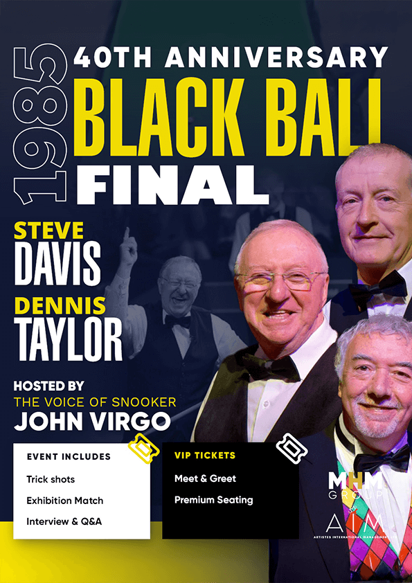 Come and join these snooker legends as they recreate the match that gripped a nation – The 1985 World Snooker Final. A record breaking 18.5m TV viewers stayed up to watch the legendary match and this is your chance to see the rematch with snooker royalty as we recreate the final frame from that special night.
